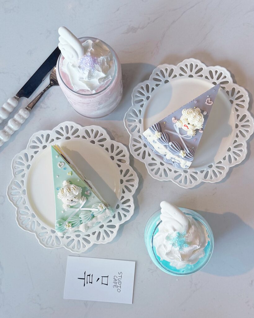 店の看板メニュー「トスニプリン(猫プリン)」(650円)は、ぷるんぷるんと揺れる姿が動画映え必至。バニラ、いちごミルク、ミルクティー、チョコミントなど豊富なフレーバー展開で、見た目の可愛さだけでなく、ババロアのような滑らかな食感と上品な甘さが好評。「クルムスムージー」(880円)は5色のカラーバリエーションで、グラスに描かれた雲の模様がフォトジェニック。