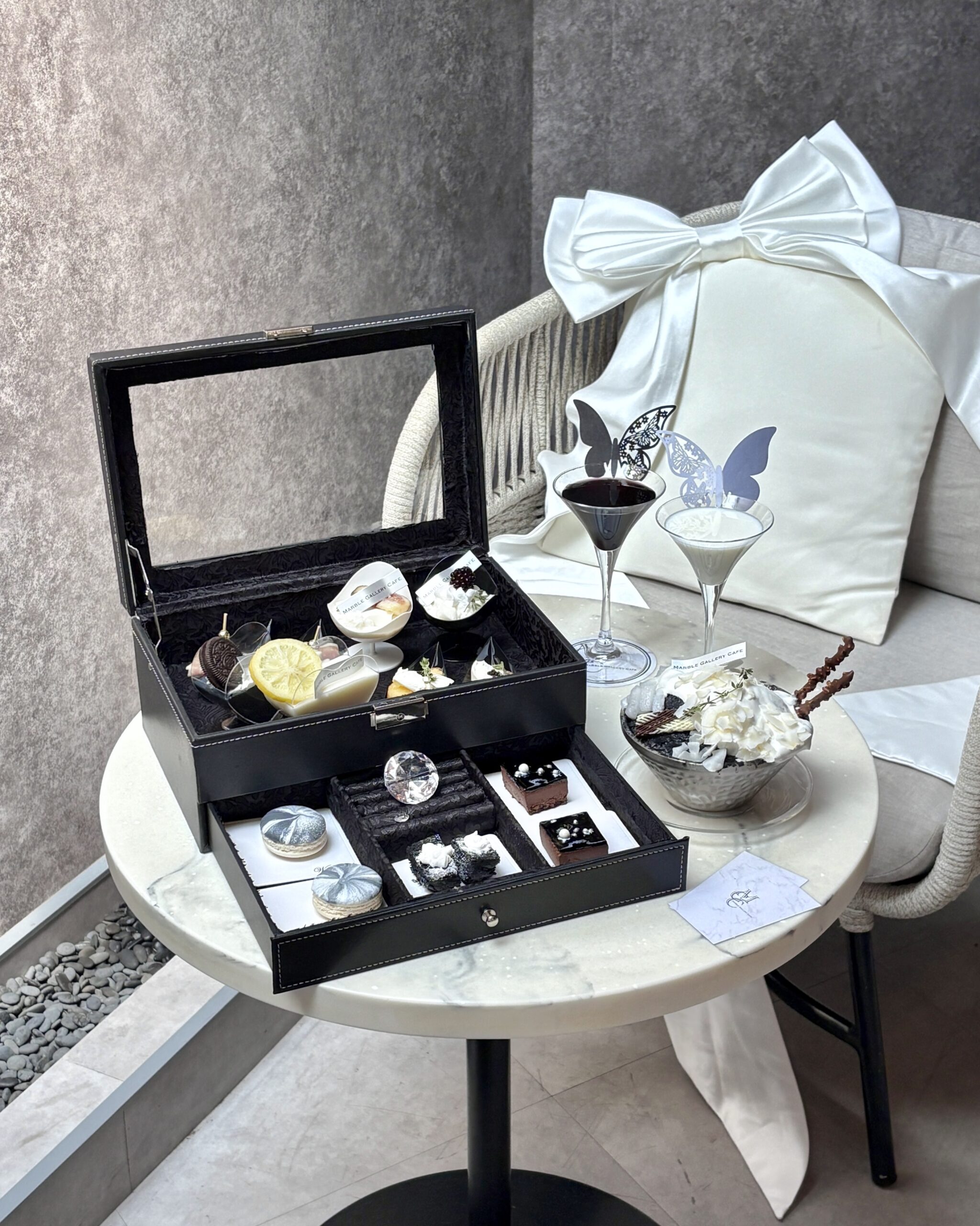 メニューの黒い色合いには竹炭を使用し、見た目の美しさだけでなく、デトックス効果も期待できる本格的な仕上がり。北海道産クリームチーズを使用したスイーツは、素材にもこだわりを持って作られており、甘さ控えめの上品な味わいが特徴です。大理石模様を再現する技術と、モノトーンの世界観を徹底的に追求したメニュー開発が、他では味わえない特別な体験ができます。