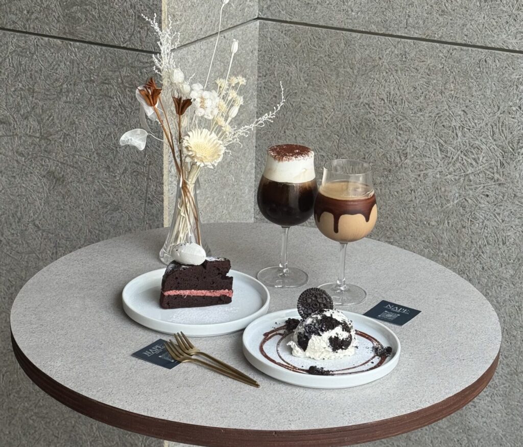 NAPE:の最大の特徴は、韓国で話題のスクープケーキを中心とした本格的なスイーツラインナップです。スクープケーキは韓国で大流行しているデザートで、アイスクリーム状のケーキが特徴的。オレオ、苺の2種類を提供しており、特にオレオはクッキークリーム好きには堪らない濃厚な味わいです。ドリンクメニューではアインシュペナーが人気で、生クリームと抹茶クリームの2種類から選択可能。23時まで営業しているため、夜カフェとしても利用しやすく、新大久保エリアでは珍しい深夜営業のカフェとして重宝されています。