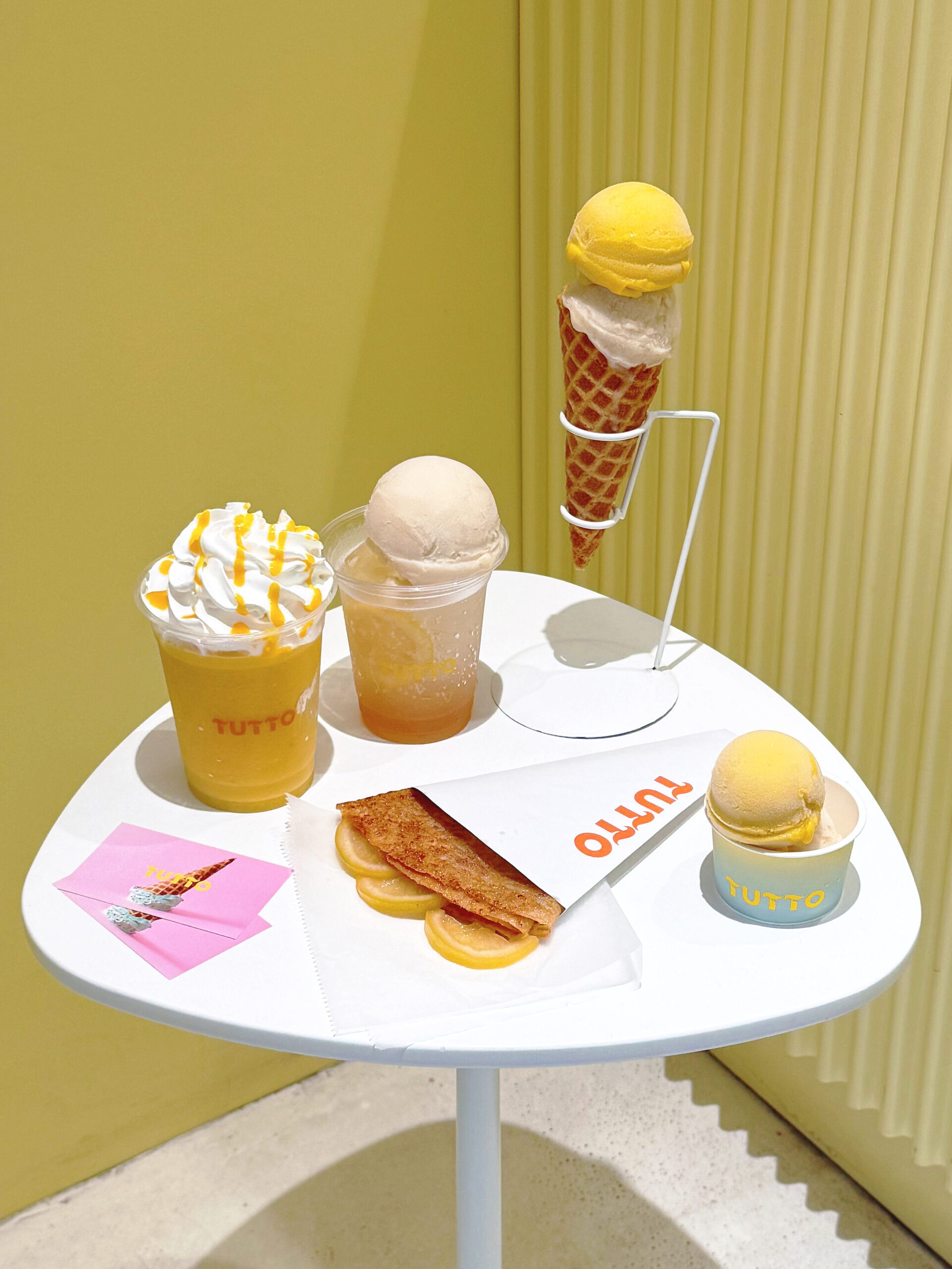 看板メニューは約14種類から選べるヴィーガンジェラートです。特に人気なのが「イタリアンソルト」で、まろやかな甘さとほんのり塩味、後から広がるオレンジの風味が絶妙なバランスです。また、「チョコミント」「ストロベリーミルク」「ピスタチオ」などの定番フレーバーから、季節限定の「あまおうハイビスカス」「ペスカローザ(桃)」まで幅広く揃っています。シングルまたはダブルが選べ、カップかコーン(プレーン・ココア)が選択可能です。サクサクのワッフルタイプのコーンも手作りで、香ばしさが人気です。さらに、米粉のクレープも好評で、外がパリパリとした独特の食感が楽しめます。