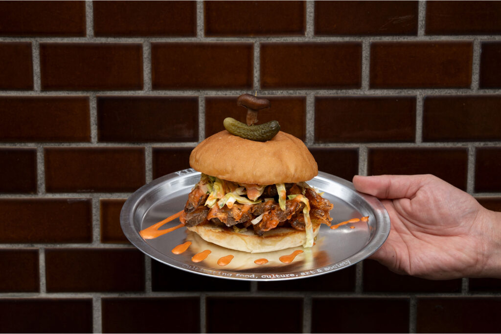 清澄白河に2025年4月にオープンした、キノコを主役にした異色のハンバーガー専門店です。通常のパティの代わりに、揚げたてのヒラタケやオイスターマッシュルームなどのキノコフリットをバンズに挟んだユニークなバーガーが楽しめます。店頭には椎茸の原木が置かれ、店内のケースでもキノコが栽培されているという、まさにキノコづくしのお店です。肉を使わないヘルシーなバーガーながら、驚くほどの満足感が得られると話題を集めています。