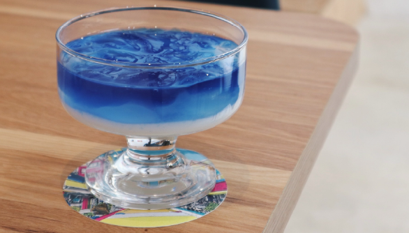 看板メニューは「清澄BLUE」というバタフライピーとレモングラスを使った青いゼリーです。見た目の美しさだけでなく、爽やかな酸味と淡い甘さのバランスが絶妙で絶品。さらに、厚切りトーストを使ったモーニングセットも人気で、バターがたっぷり染み込んだトーストは食べ応え抜群です。コーヒーは3種類の豆から選べるハンドドリップで、一杯一杯丁寧に淹れられています。