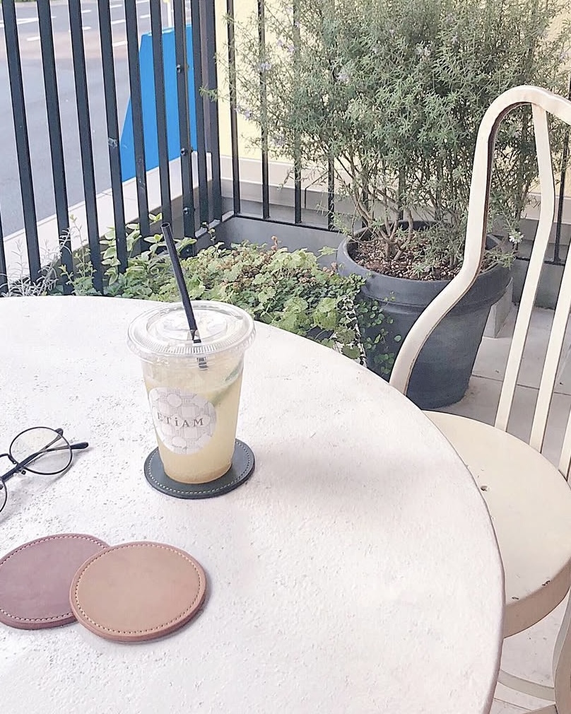 蔵前駅A1a・A1b出口から徒歩すぐの場所にある「ETiAM KURAMAE」は、2021年3月にオープンした革製品ブランド「ETiAM」のフラッグシップストアに併設されたカフェです。工房とカフェが一体となった空間で、上質なバッグや小物を眺めながらハンドドリップのコーヒーを楽しめる、蔵前エリアならではのユニークなお店です。外観は革製品のショップのようですが、カフェの看板が出ており、洗練された落ち着いた雰囲気が特徴です。