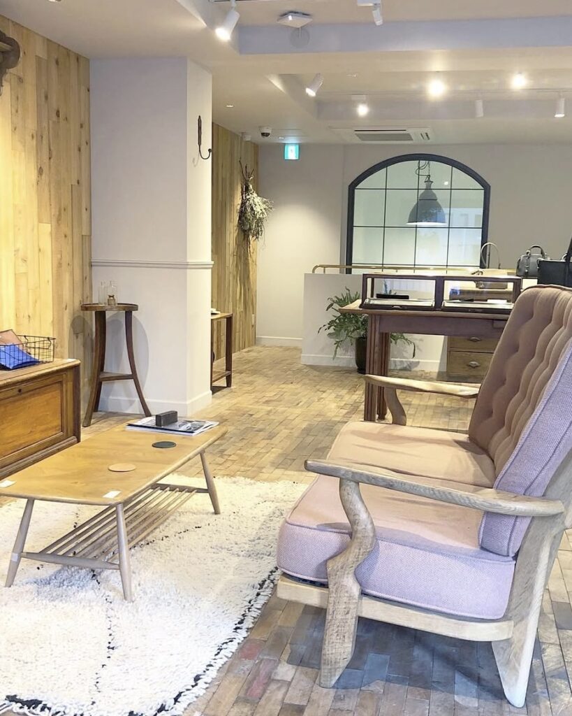 店内は1階が革製品の販売スペースとカフェの注文カウンター、奥には工房があり、2階と3階がカフェスペースという構成になっています。海外から仕入れたアンティーク家具が配置され、シックでおしゃれな雰囲気が漂います。2階にはソファ席やテーブル席があり、テラス席も設けられているため、天気の良い日は開放的な空気の中でゆったりとくつろぐことができます。3階には大きなテーブルが2つある広いイートインスペースがあり、革製品のディスプレイに囲まれた不思議で心地よい空間となっています。店内のいたるところに高級な革製品が展示されており、カフェ利用をしながらショッピングも楽しめます。無料Wi-Fiも完備されており、一人で静かに過ごしたい方や作業をしたい方にも適した環境です。