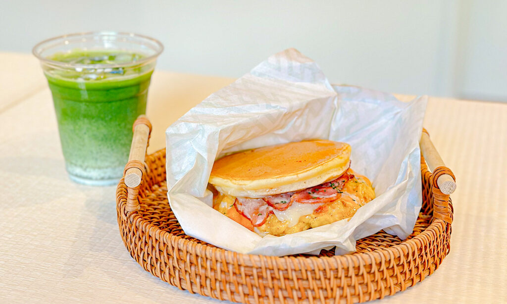 メニューはヘルシー志向の料理が中心で、看板メニューのアサイーボウルはバナナやベリー、グラノーラがたっぷりのった彩り豊かな一品です。甘酸っぱいフルーツとアサイーの組み合わせが爽やかで、観光で歩き疲れた体にぴったり。サンドイッチメニューも充実しており、ベーコンエッグチーズサンド、オリジナルエッグバターサンド、スーパーアボエッグサンドなど、パンケーキやトーストでボリュームたっぷりの具材を挟んだメニューが人気です。ドリンクメニューでは、カフェラテ、抹茶ラテ、ほうじ茶ラテなどのオリジナルラテが人気で、レモンスカッシュなどの季節感あふれるドリンクも豊富に揃っています。