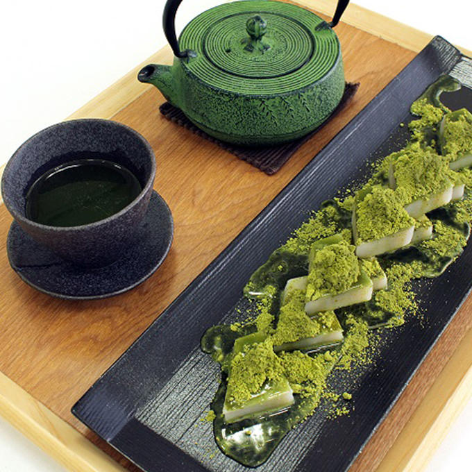 最大の特徴は、茶鑑定名匠・森田治秀氏が合組したオリジナル宇治抹茶「金天閣」をふんだんに使用していること。小売価格で1kgあたり5万円を超える高級抹茶です。一番人気の「抹茶満月(抹茶バターケーキ)」は手土産にも最適。カウンターでは最高級宇治抹茶「天の極」のお薄(770円)も楽しめ、鮮やかな蛍光グリーンの色合いとうま味が際立つまろやかな味わいが堪能できます。