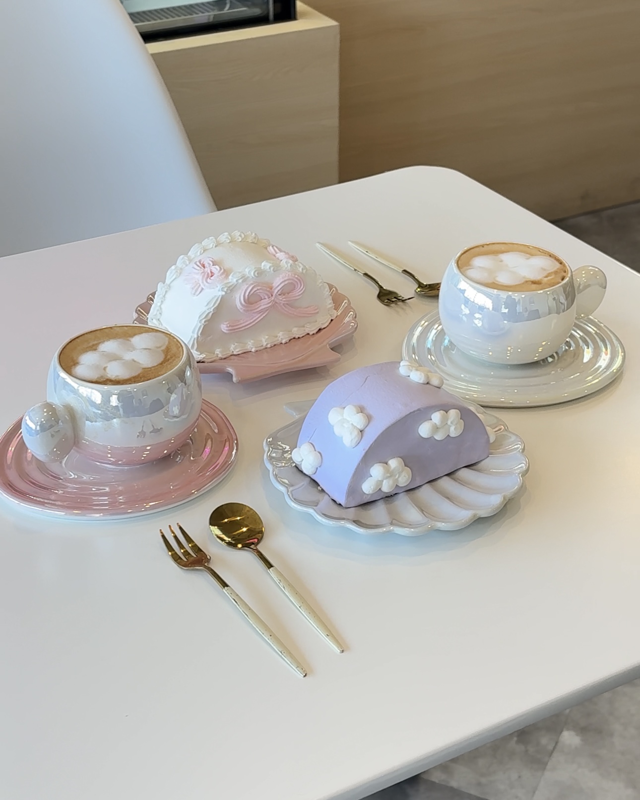- SNS映え抜群のスイーツ: 愛らしい表情の「くまちゃんケーキ」や、店名にちなんだ半月型の「雲ケーキ」、ふわふわの「雲のラテアート」など、写真映えするメニューが豊富に揃っています。