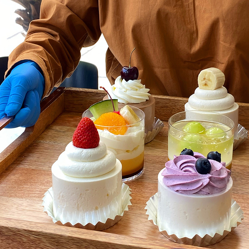 ドリンクメニューが充実しており、しかもリーズナブルな価格で楽しめるのが嬉しいポイント。特に人気なのが季節限定のソーダドリンクで、白桃とキウイのノンアルコールサングリア、いちごとレモンのソーダ、パイナップルソーダなど、見た目も華やかで味も本格的です。ハーブティーやチャイ、デカフェコーヒーなども揃っており、様々な好みに対応しています。フードメニューではシフォンケーキやチーズケーキなどのデザート類が評判で、特にシフォンケーキは注文を受けてから泡立てる生クリームが添えられ、ふわふわの食感と優しい甘さが絶品。ワッフルやベーグルサンド、軽食メニューもあり、カフェタイムだけでなくランチ利用も可能です。
