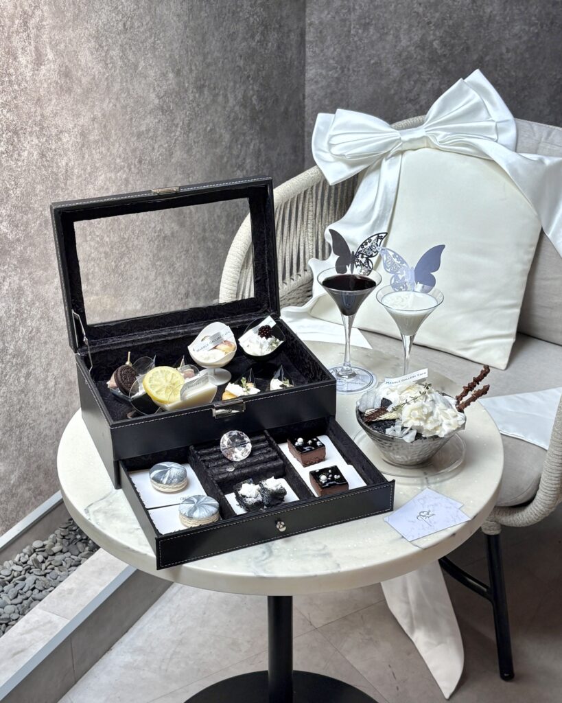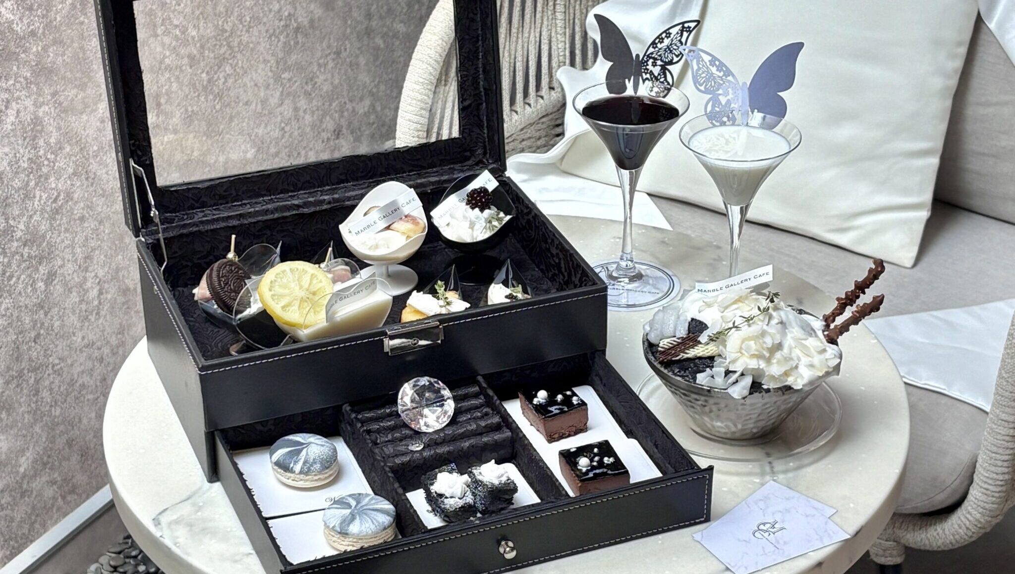 看板メニューは、大理石紋のマーブルムースとモノクロのマーブルラテがセットになった「マーブルセット」。マーブルムースは北海道産クリームチーズを使用したチーズケーキのような食感のムースで、下にはオレオを砕いたようなザクザクとしたクッキー生地が層になっています。甘さは控えめで、見た目の美しさだけでなく味も本格的です。マーブルラテは黒い部分に竹炭を使用しており、混ぜるとグレーになる不思議なビジュアル。予約制でアフタヌーンティーも提供しているので要チェックですよ。
