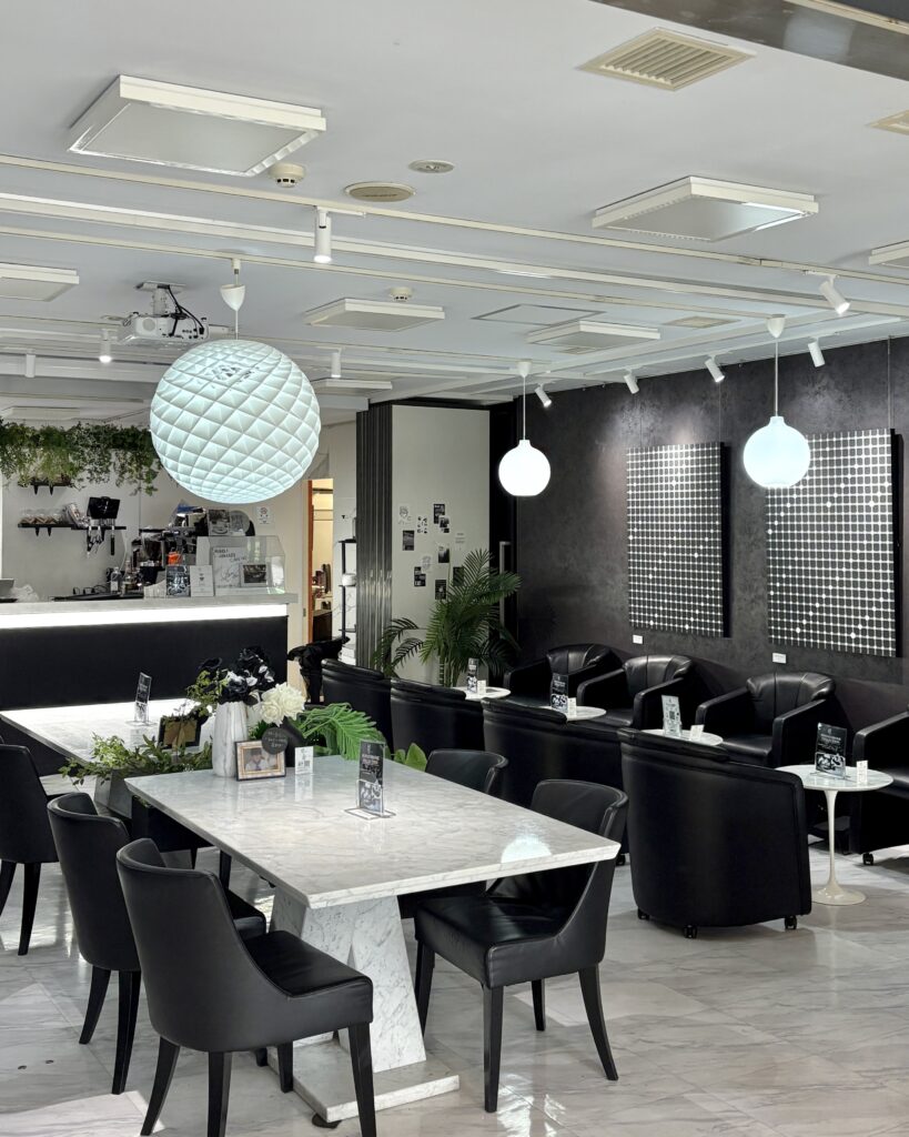 六本木駅から徒歩約9分、赤坂駅から徒歩約10分の静かな住宅街に佇むモノトーンカフェです。金曜ドラマ「フェルマーの料理」のロケ地としても使用されたことで話題となりました。大理石を基調とした白と黒のモノトーンで統一された店内は、まるでアートギャラリーのような洗練された空間。インスタ映えするカフェとして若い女性を中心に人気を集めていますが、立地が駅から少し離れているため意外と穴場スポットとして知られています。店内は広々としており、席と席の間隔も十分に取られているため、ゆったりと過ごすことができます。
