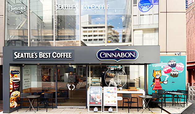 六本木駅から徒歩1分の好立地にある「シナボン/シアトルズベストコーヒー 六本木店」は、世界56ヵ国で1,800店舗以上を展開するシナモンロール専門店とシアトル発祥のコーヒーチェーンが融合したカフェです。お店の外まで漂うシナモンの甘い香りが特徴的で、思わず足を止めてしまう魅力があります。ガラス張りの店頭ではシナモンロールを作る様子を見ることができ、焼きたての温かいシナモンロールを味わえるのが魅力。看板商品の「シナボンクラシック」は手頃な価格設定で、ドリンクとのセットメニューも充実しています。モーニングメニューやナポリタンなどの軽食も用意されており、朝から夜遅くまで営業しているため、様々なシーンで利用できます。