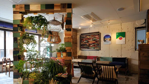 新宿三丁目駅から徒歩3分、雑居ビル3Fにある森をコンセプトにした癒しのカフェ。温かい木目調のインテリアと観葉植物に囲まれた空間は、新宿の喧騒を忘れさせてくれる都会のオアシスです。