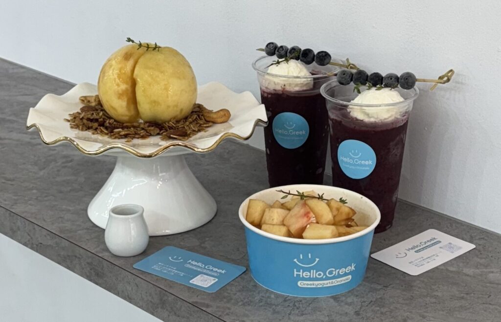 グリークヨーグルト専門店。高タンパク・低カロリーで罪悪感なく楽しめる。旬のフルーツたっぷりの「ヨアボ」が人気。